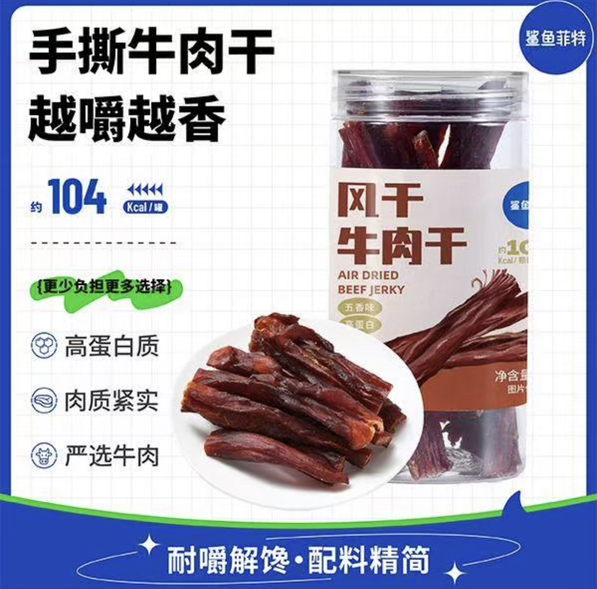 【鲨鱼菲特】轻食 风干牛肉干五香味 耐嚼健身零食 30g/罐