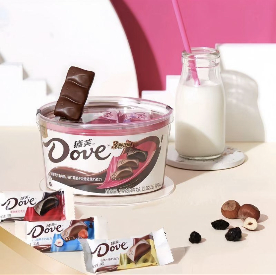 德芙 什锦装丝滑牛奶 榛仁葡萄干 及香浓黑巧克力 249g/盒