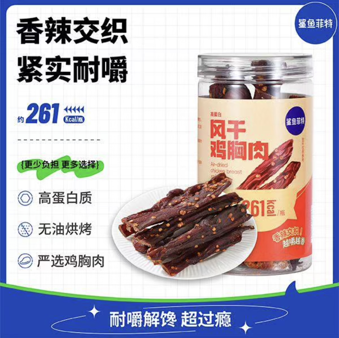 【鲨鱼菲特】轻食 香辣味风干鸡胸肉 高蛋白干香耐嚼烘烤鸡肉干健身零食解馋即食 80g/罐