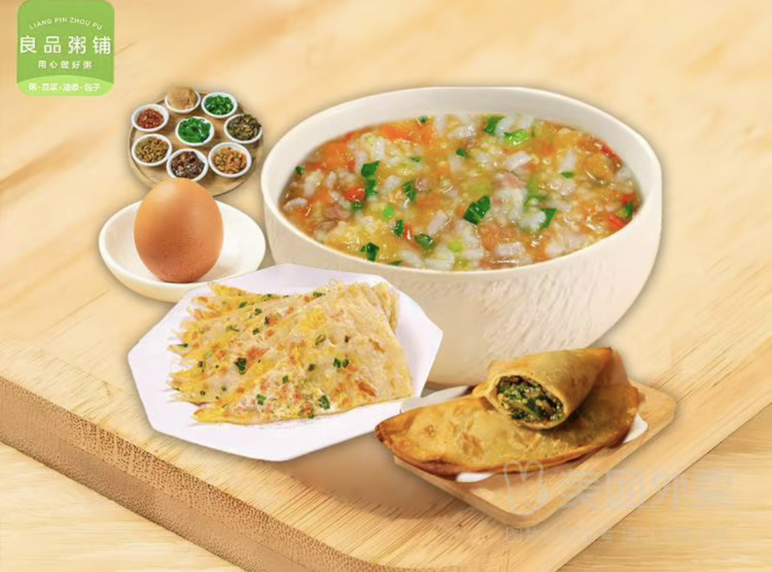 皮蛋瘦肉粥+养胃小粥+鲜肉小笼包5个+香辣糍粑+小